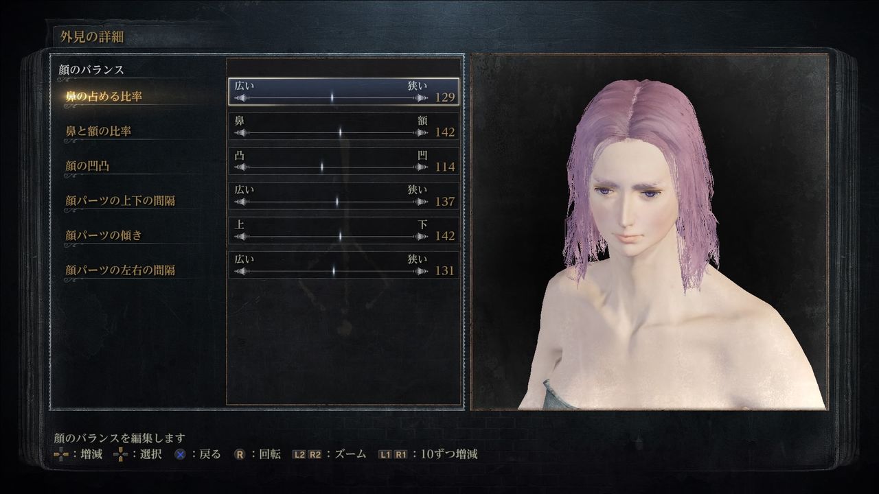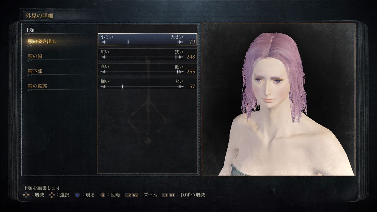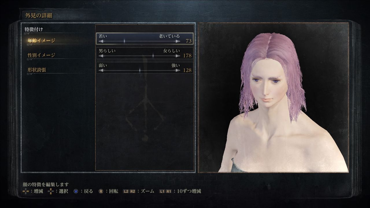 脚部140。体格は顔に影響しないので、この通りにやらず、好みで自由に数値を決めて良い。年頃は若年(Young)、声は自由。