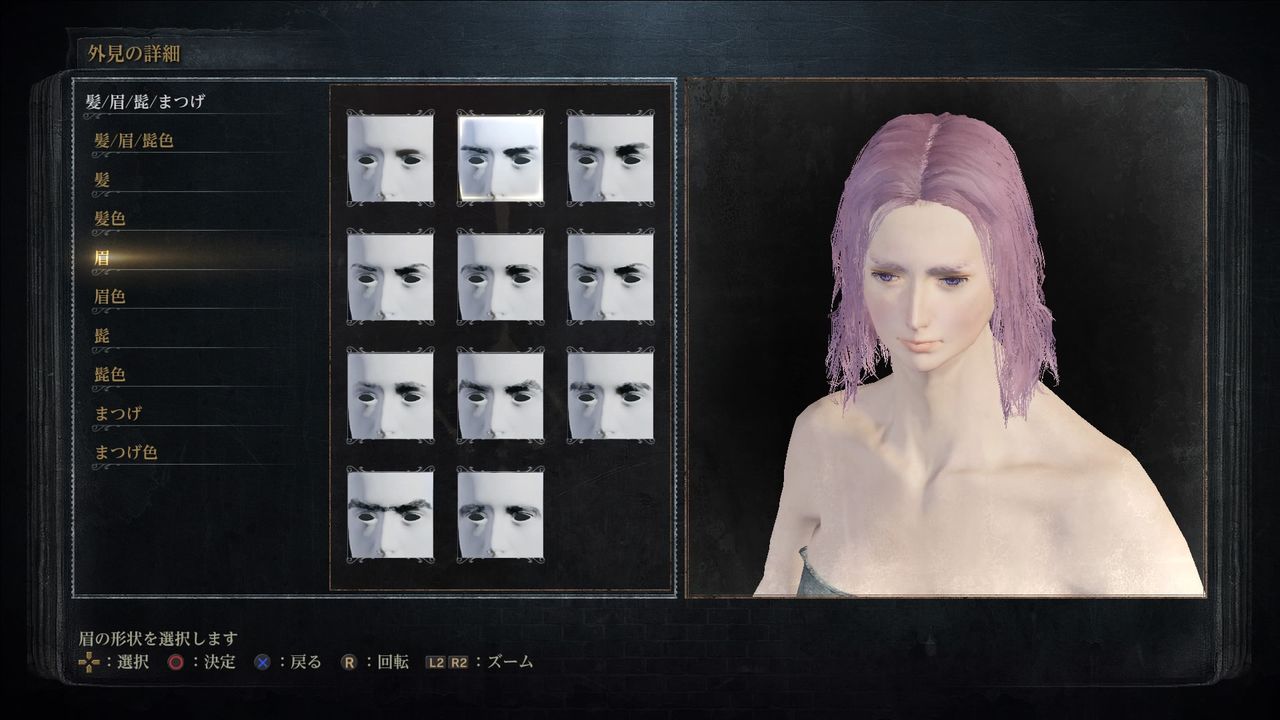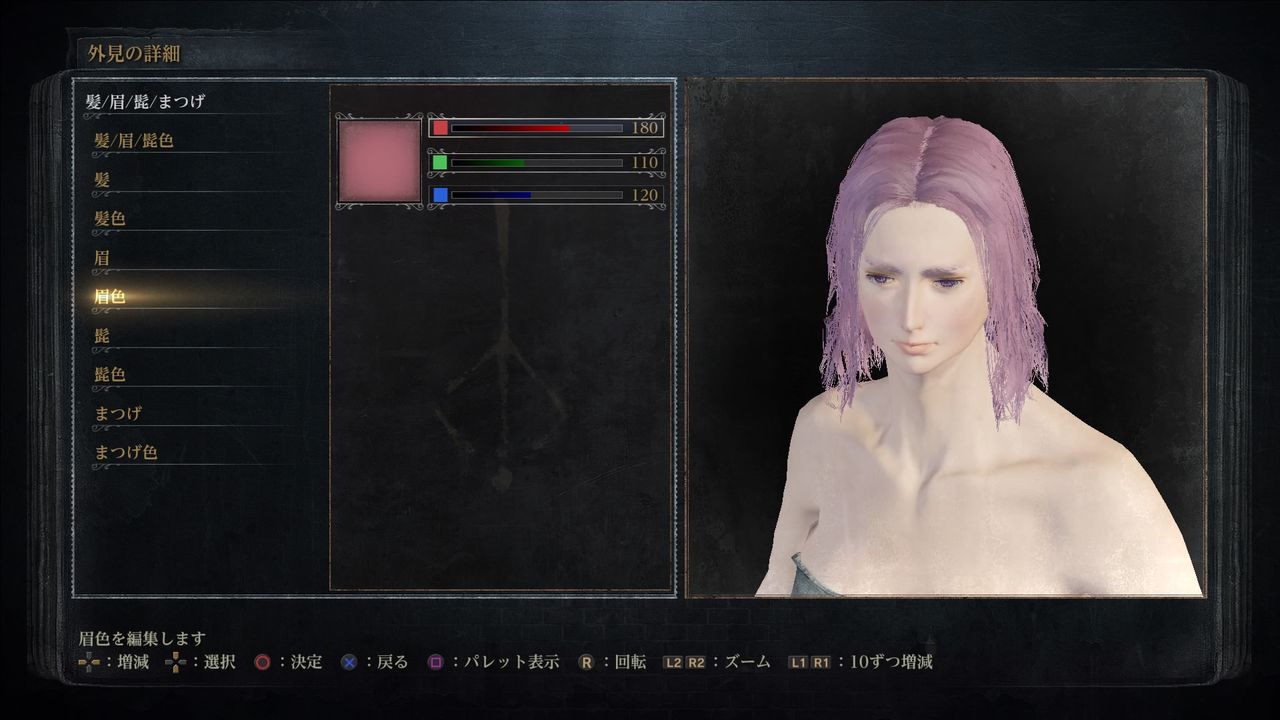 眉色(Brow Color):赤180/緑110/青120。好みの色で良い。