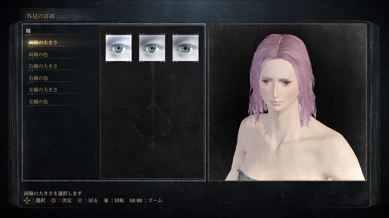 両瞳の大きさ(Size of Pupils):左(x[■□□])。好みで選んで良い。