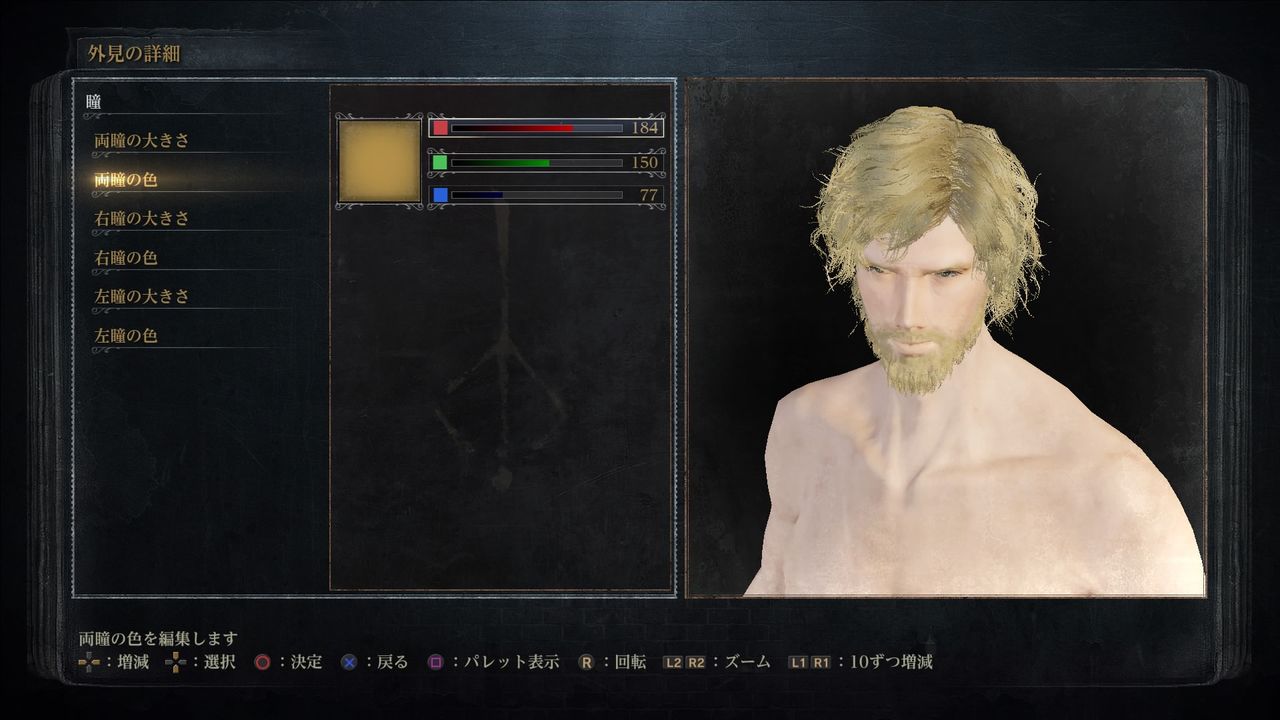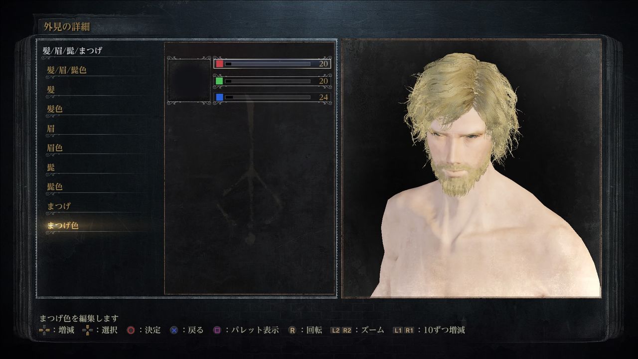 髭色(Beard Color):赤222/緑166/青90。好みの色で良い。