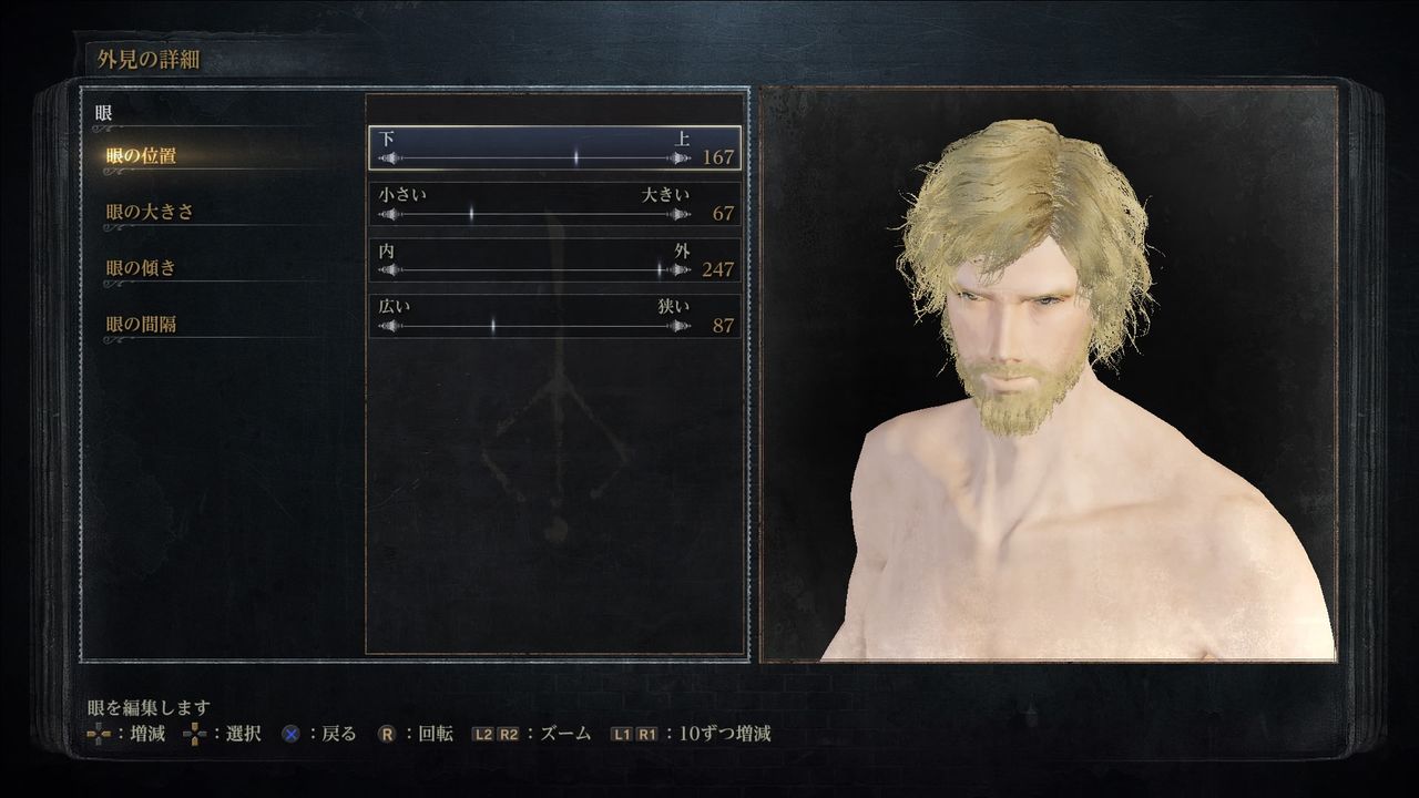 眼(Eyes):位置167/大きさ67/傾き247/間隔87