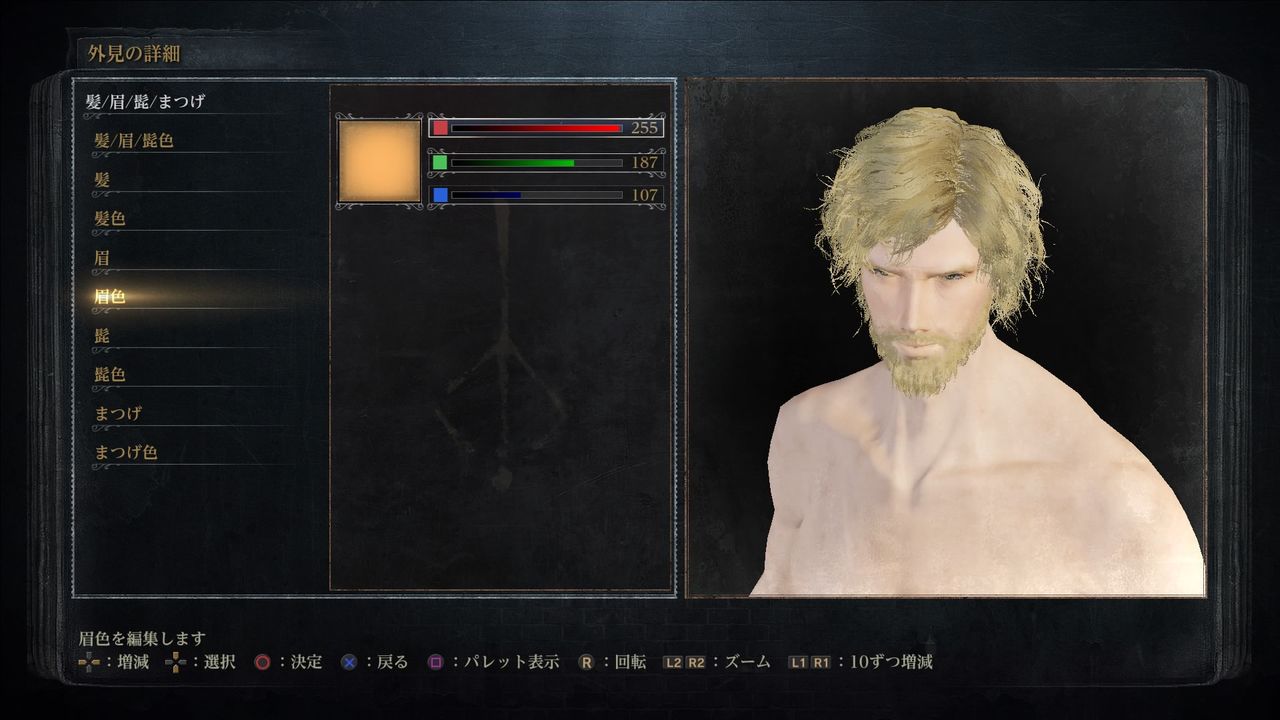 眉色(Brow Color):赤255/緑187/青107。好みの色で良い。