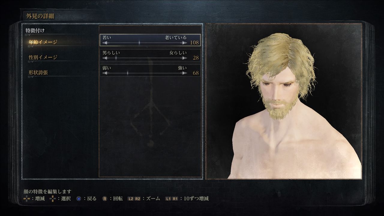 脚部240。体格は顔に影響しないので、この通りにやらず、好みで自由に数値を決めて良い。年頃は壮年(Mature)、声は自由。