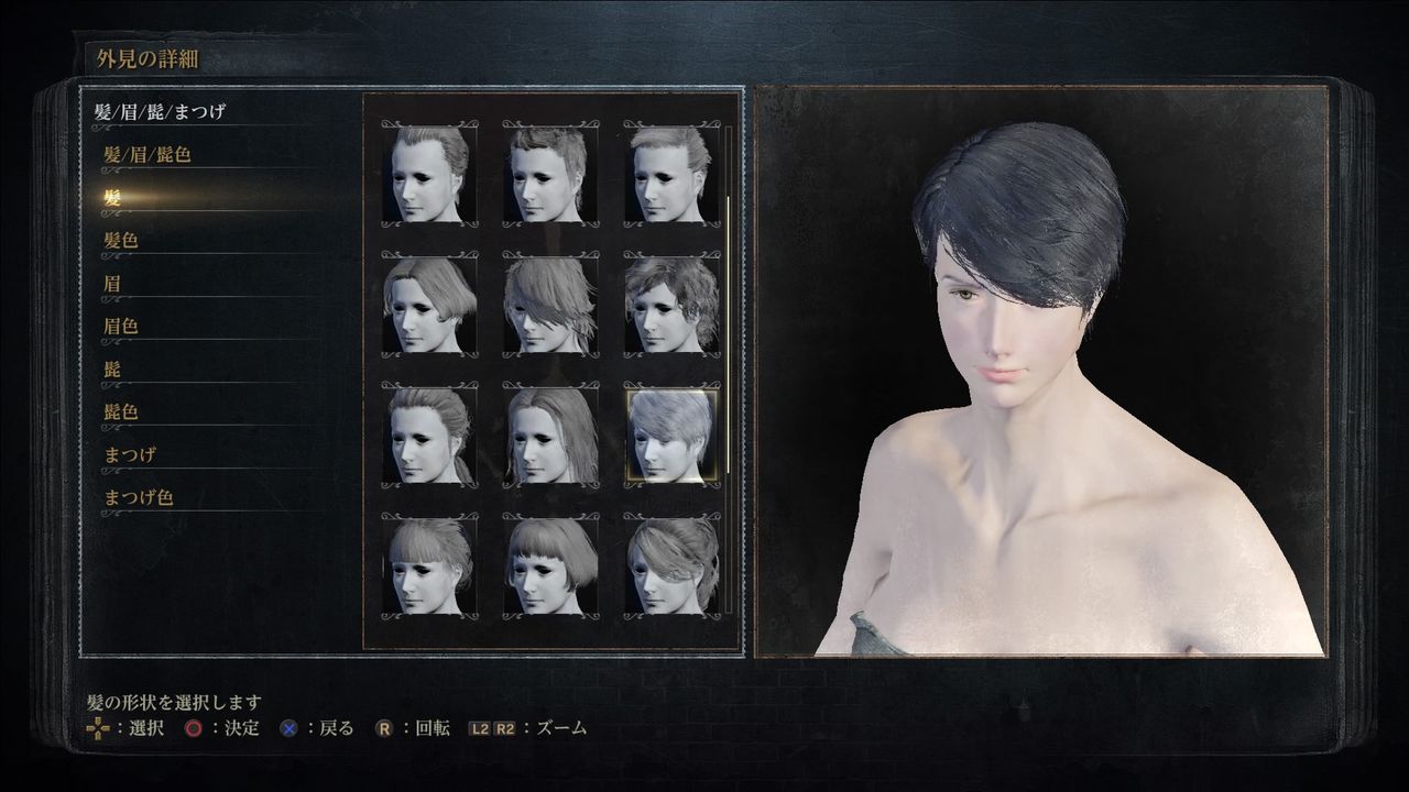髪(Hair):四段目、右(x[□□■],y↓-3)。好みの髪型で良い。