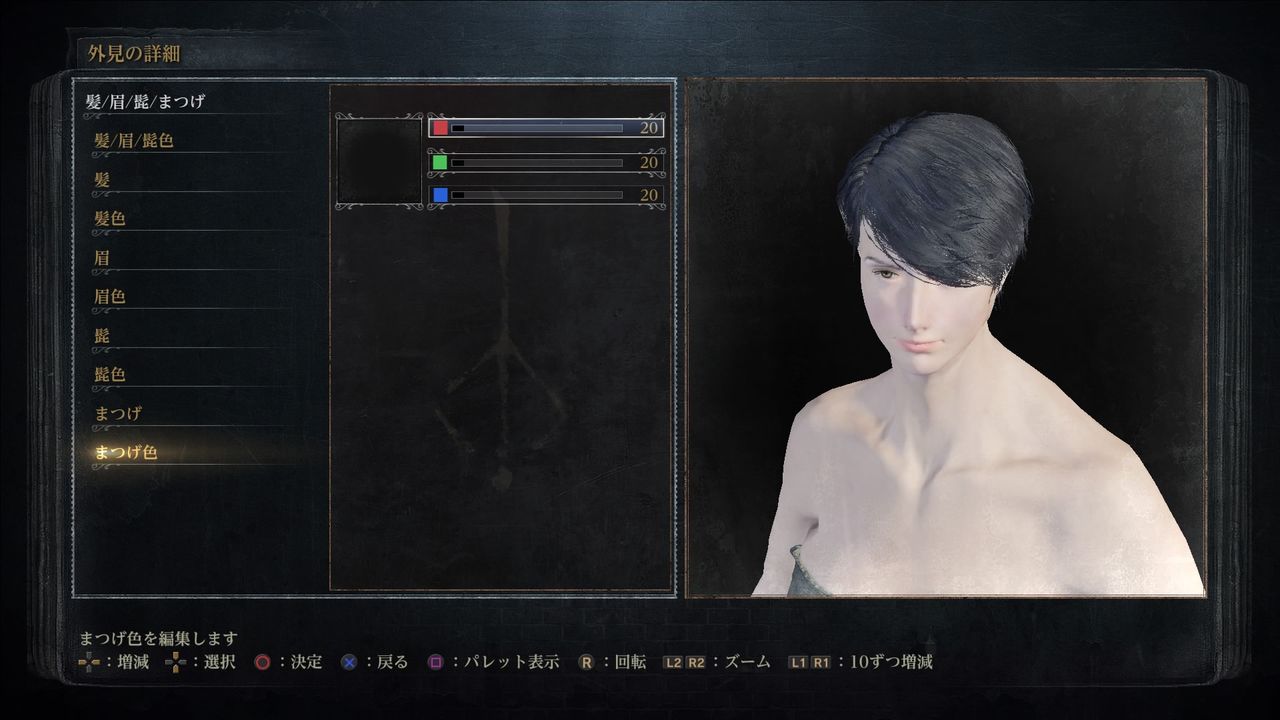 まつげ色(Eyelash Color):赤20/緑20/青20。好みの色で良い。