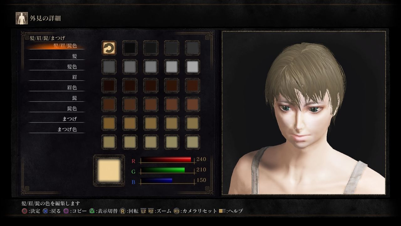 髪/眉/髭色(Hair/Brow/Beard):R240/G210/B150