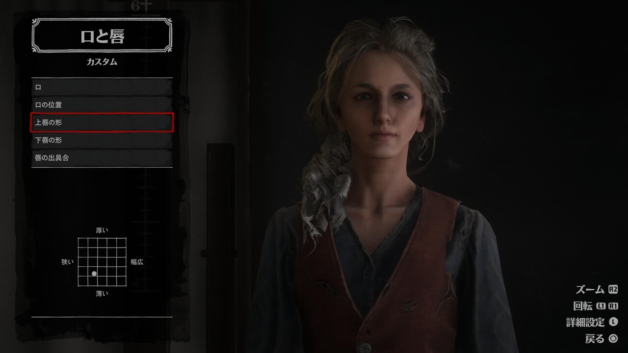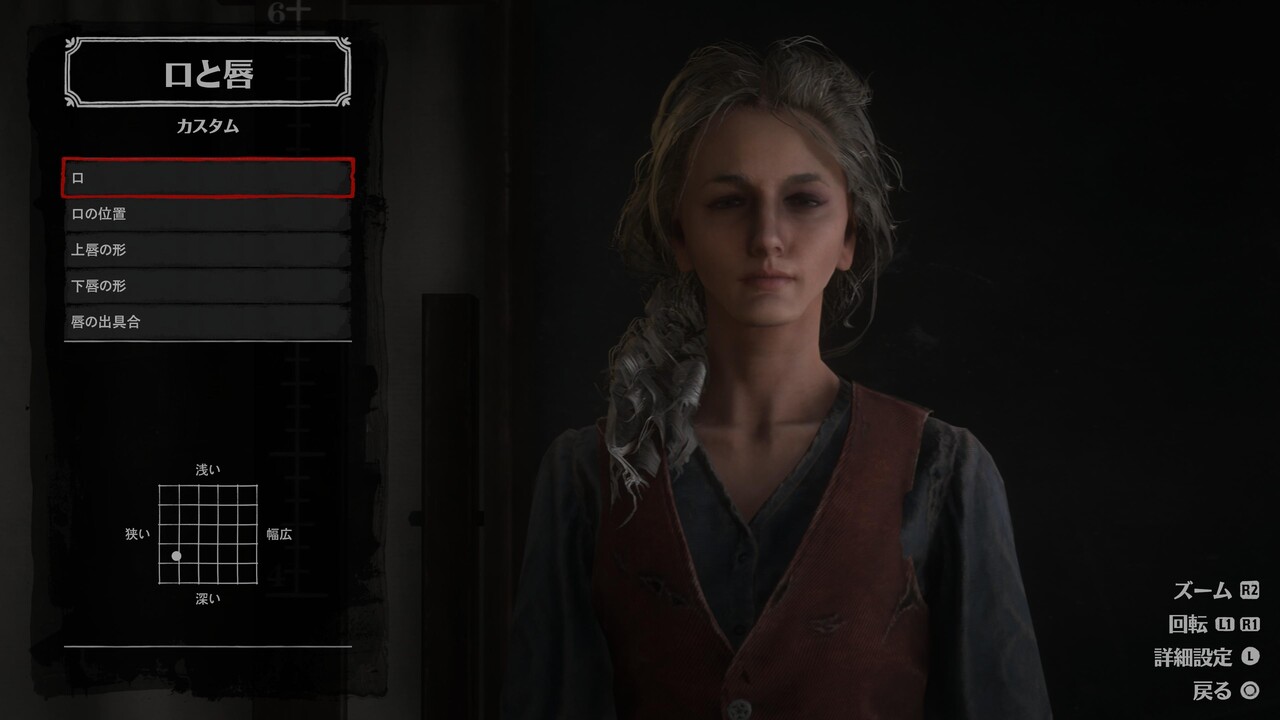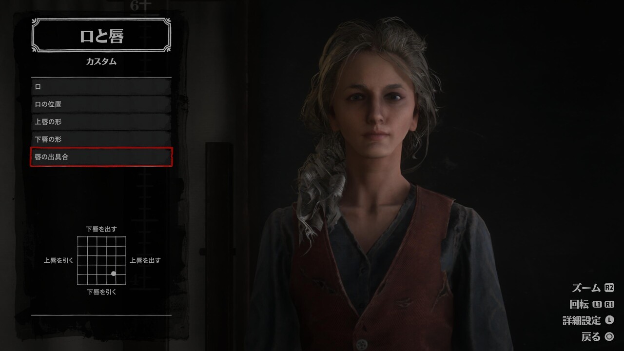 レッド・デッド・リデンプションIIのオンラインモード、Red Dead Online用のキャラ作成データ。体格、肌や目の色、歯、髪型、ライフスタイル、メイクアップは自由。