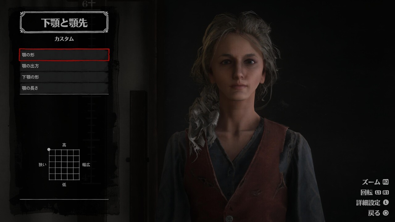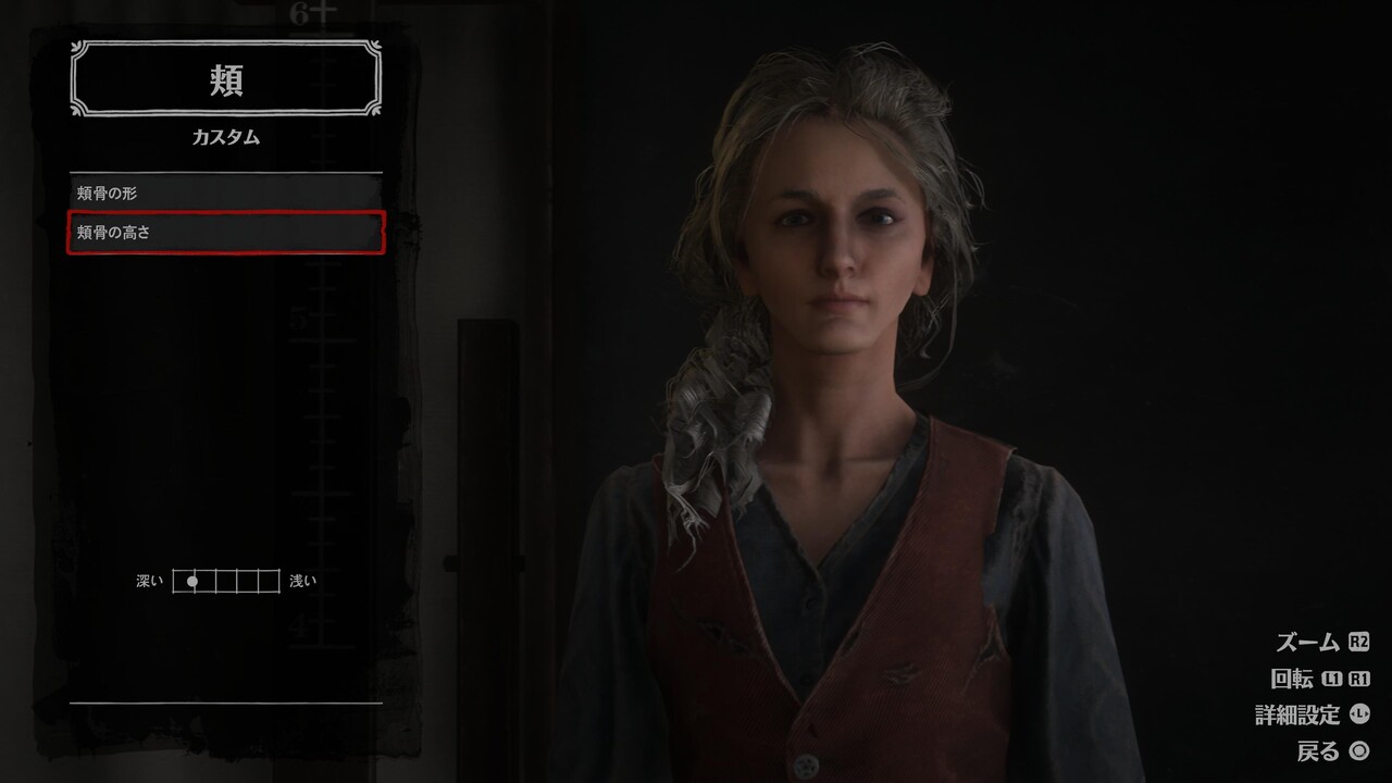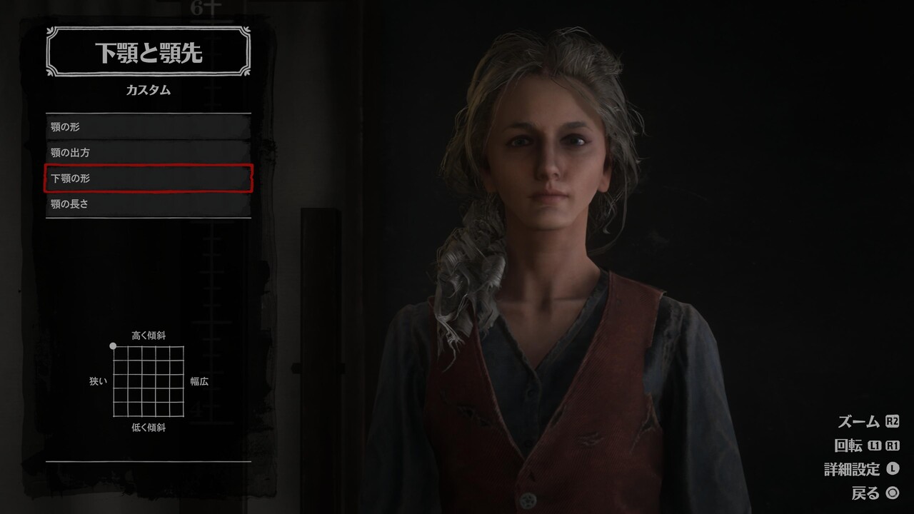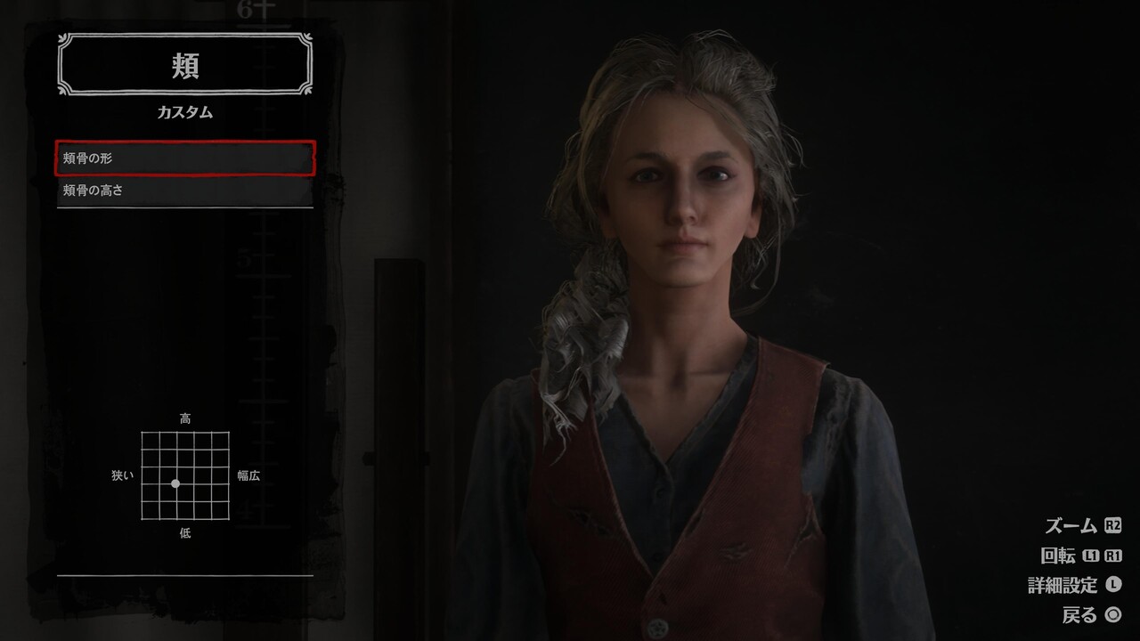 レッド・デッド・リデンプションIIのオンラインモード、Red Dead Online用のキャラ作成データ。体格、肌や目の色、歯、髪型、ライフスタイル、メイクアップは自由。