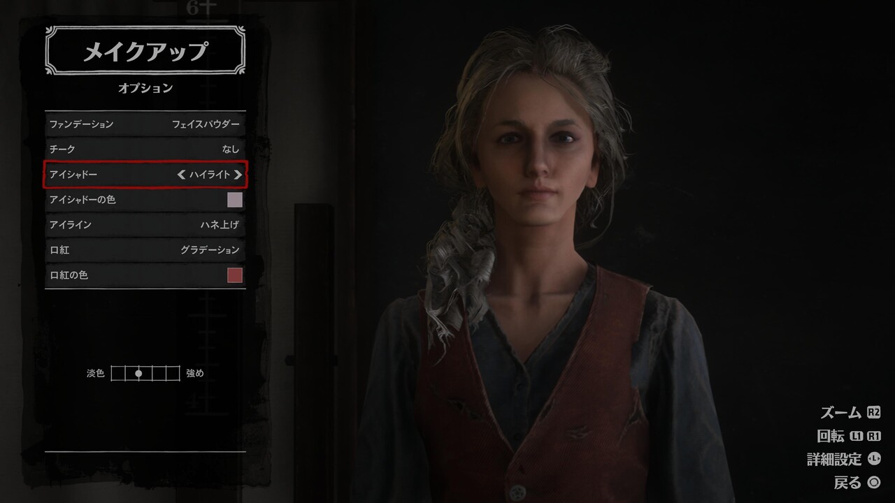 チーク(Blusher):なし(None)アイシャドー(Eyeshadow):ハイライト(Highlighted)