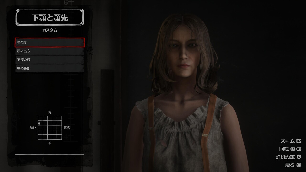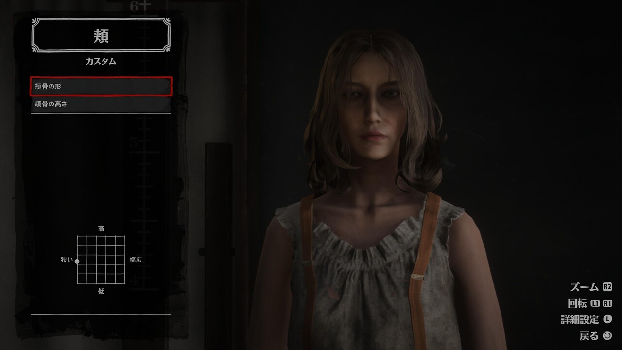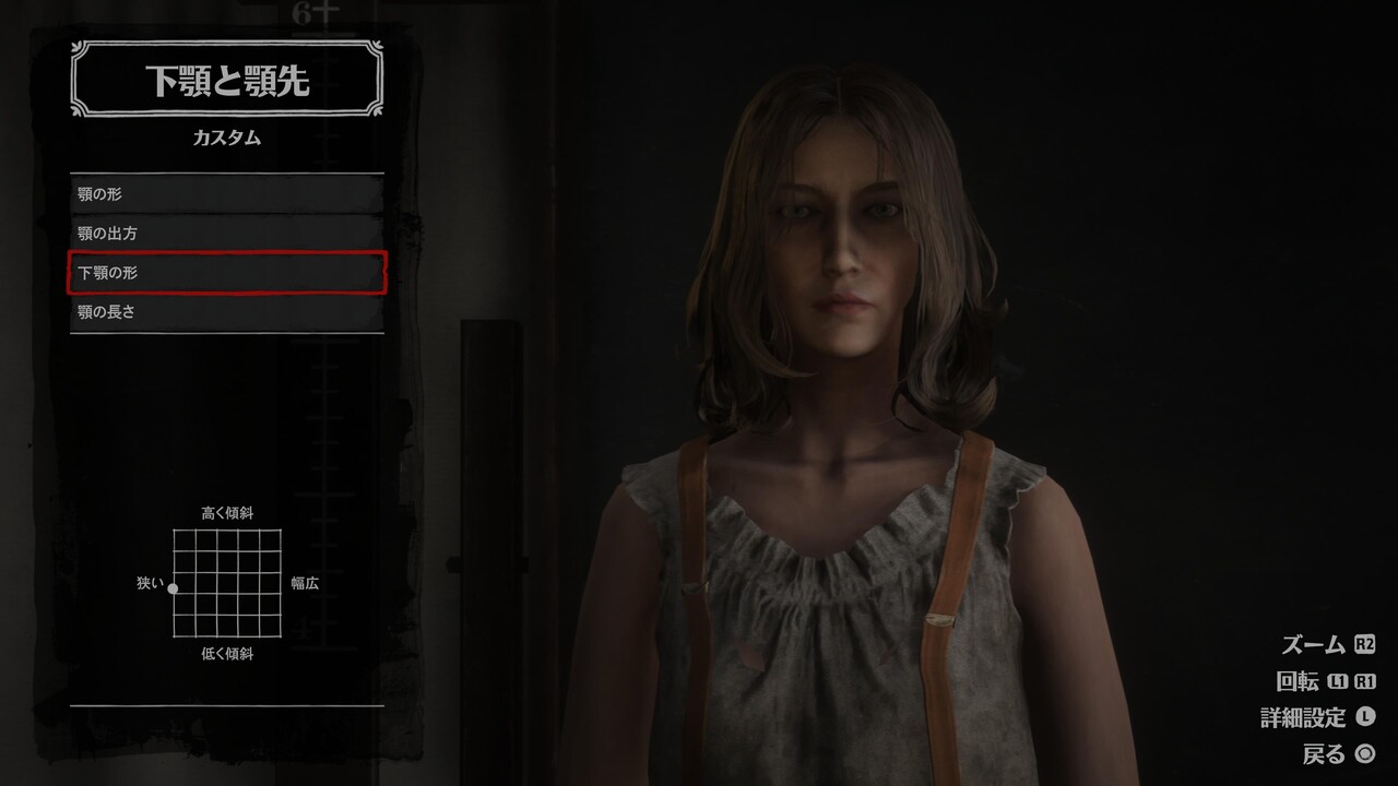レッド・デッド・リデンプションIIのオンラインモード、Red Dead Online用のキャラ作成データ。体格、肌や目の色、歯、髪型、ライフスタイル、メイクアップは自由。