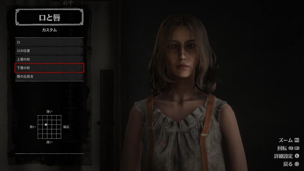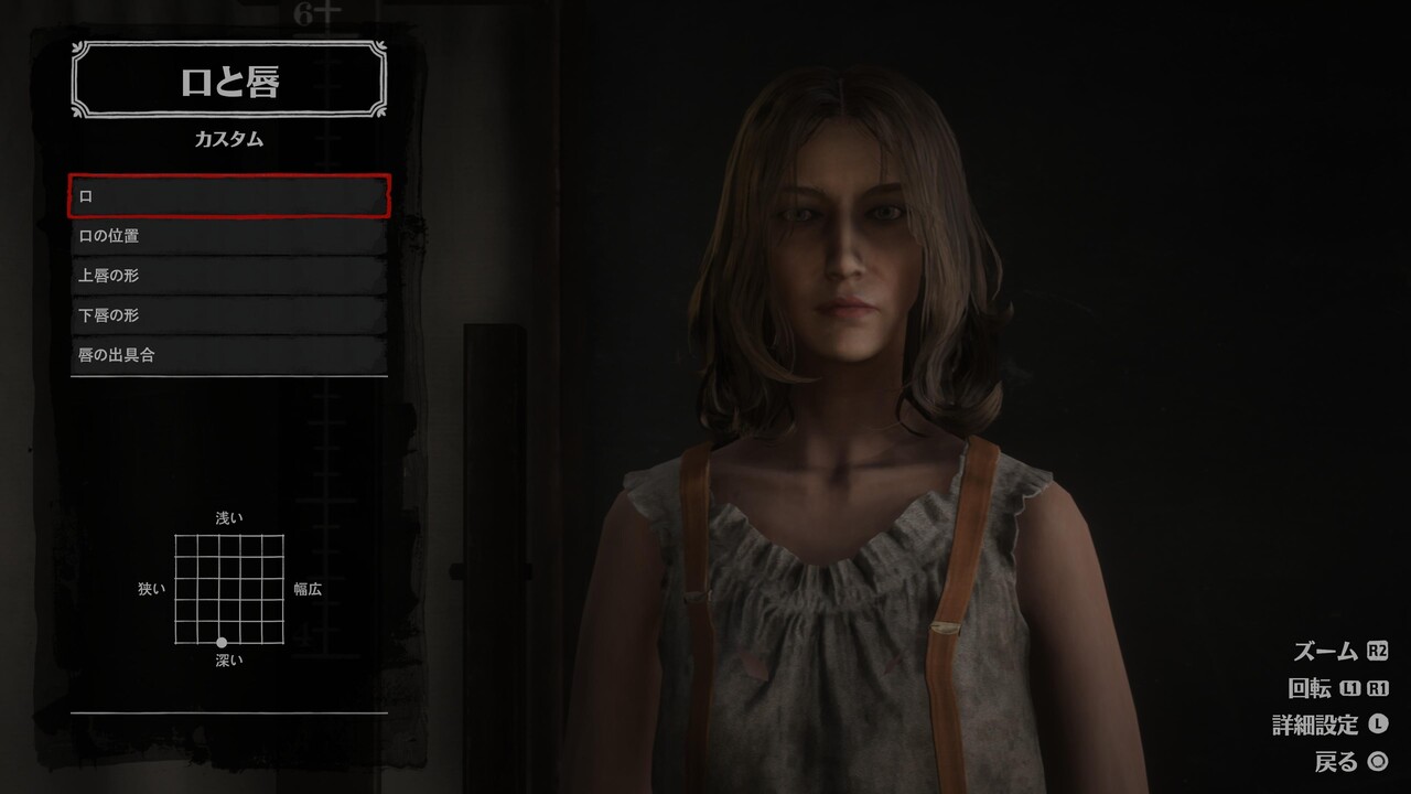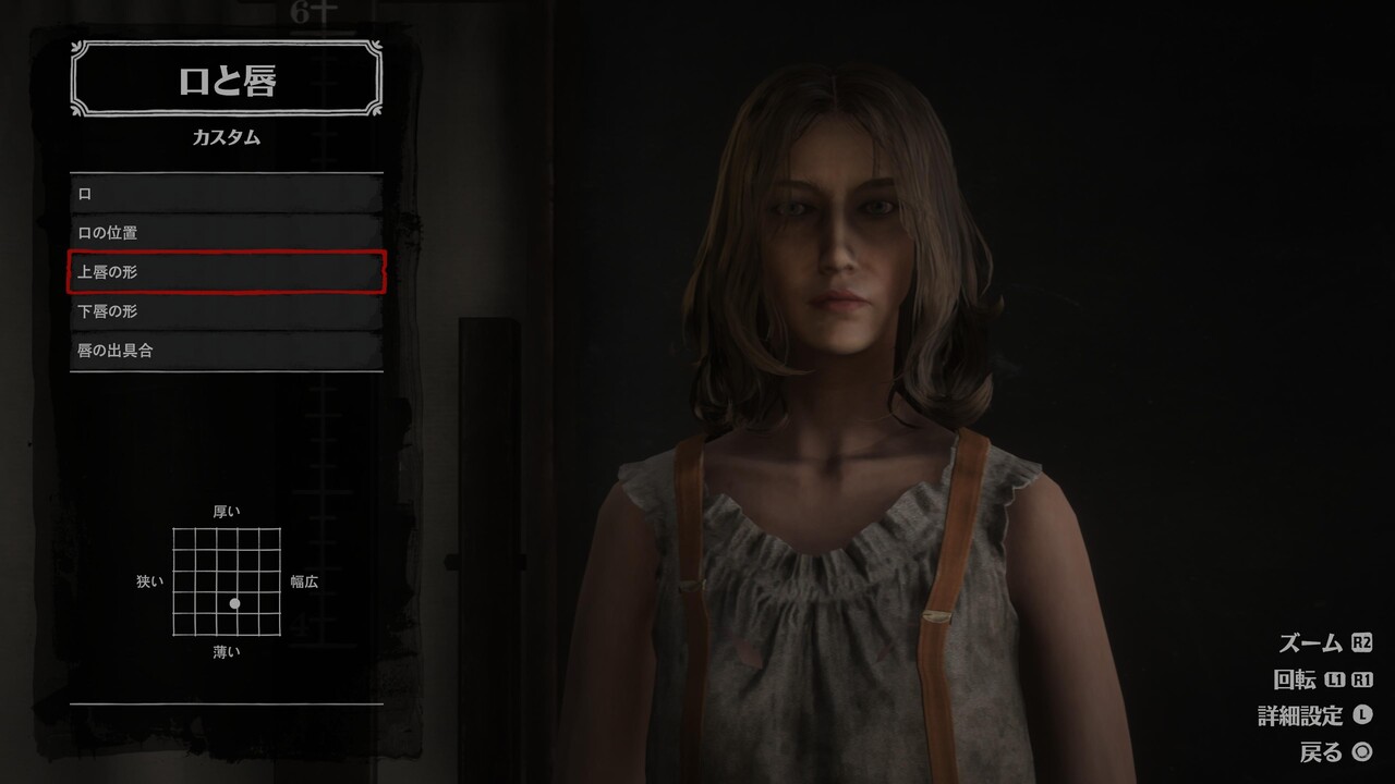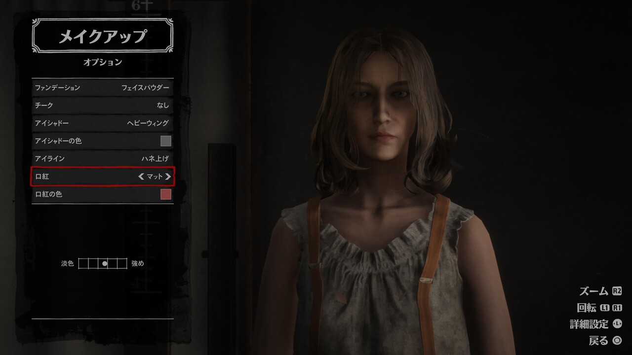 レッド・デッド・リデンプションIIのオンラインモード、Red Dead Online用のキャラ作成データ。体格、肌や目の色、歯、髪型、ライフスタイル、メイクアップは自由。