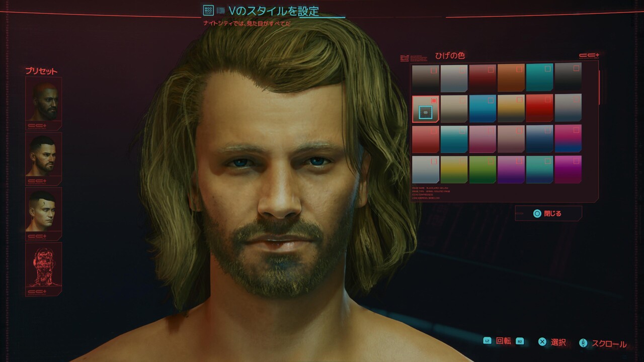 肌のタイプや眉毛は見栄えの良いものを選んでいるが、好みで設定しても問題ない。その他、未設定のために省略してあるサイバーウェアやタトゥーなども自由。