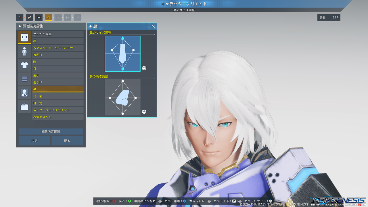 鼻のサイズ調整:[1:↑max・2:←max・3:↑max]⇒[1:↓47click・2:-・3:-]