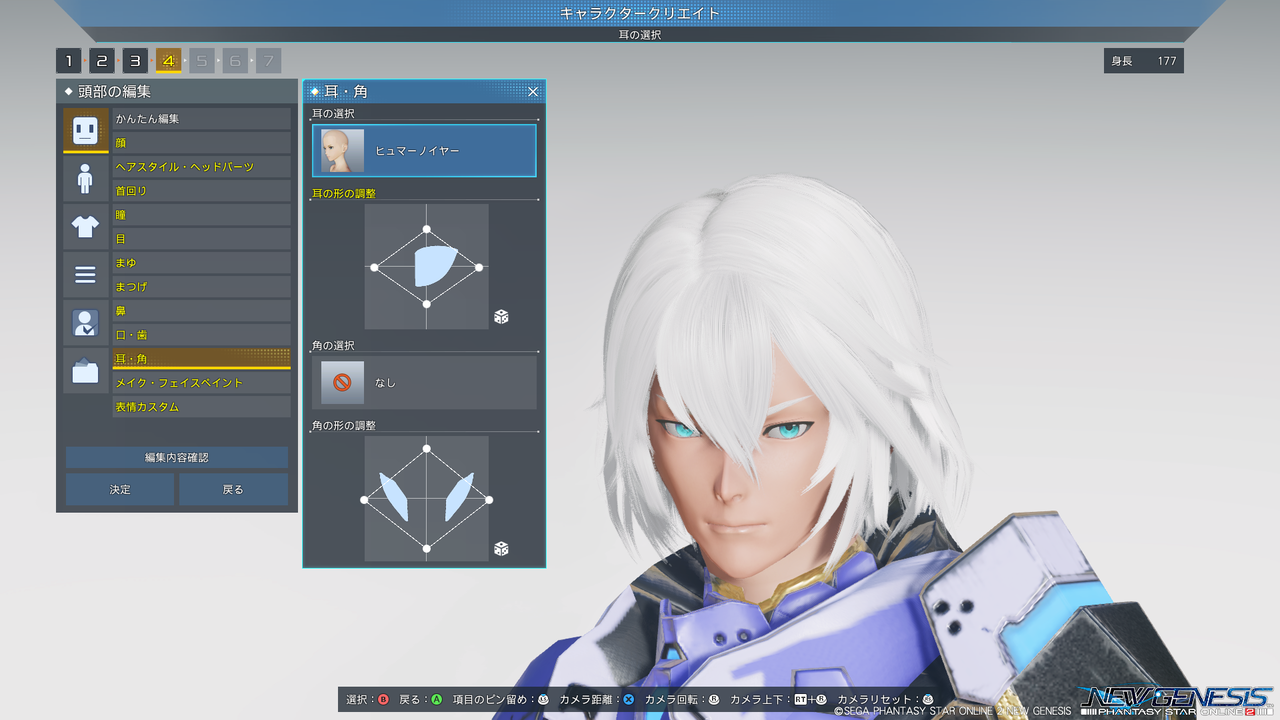 耳の形の調整:[1:↓max・2:→max・3:↓max]⇒[1:-・2:←52click・3:↑60click]