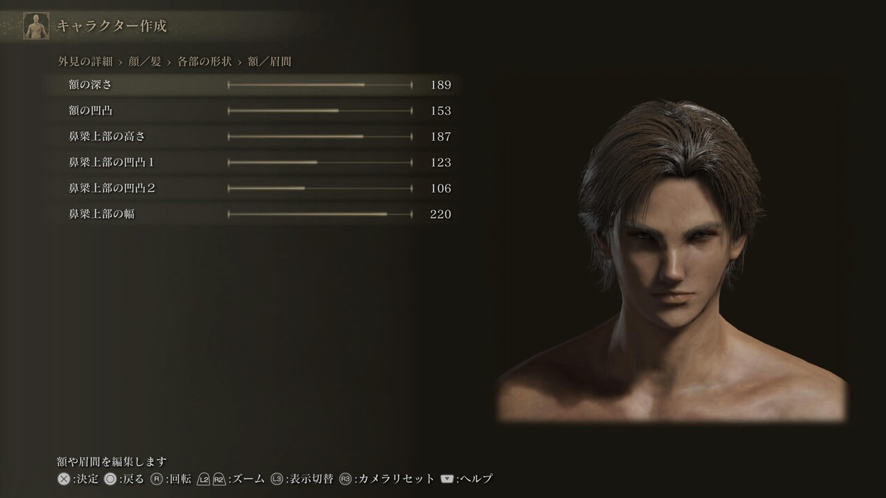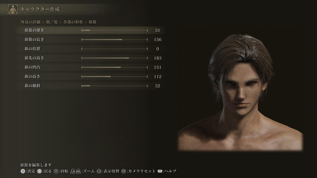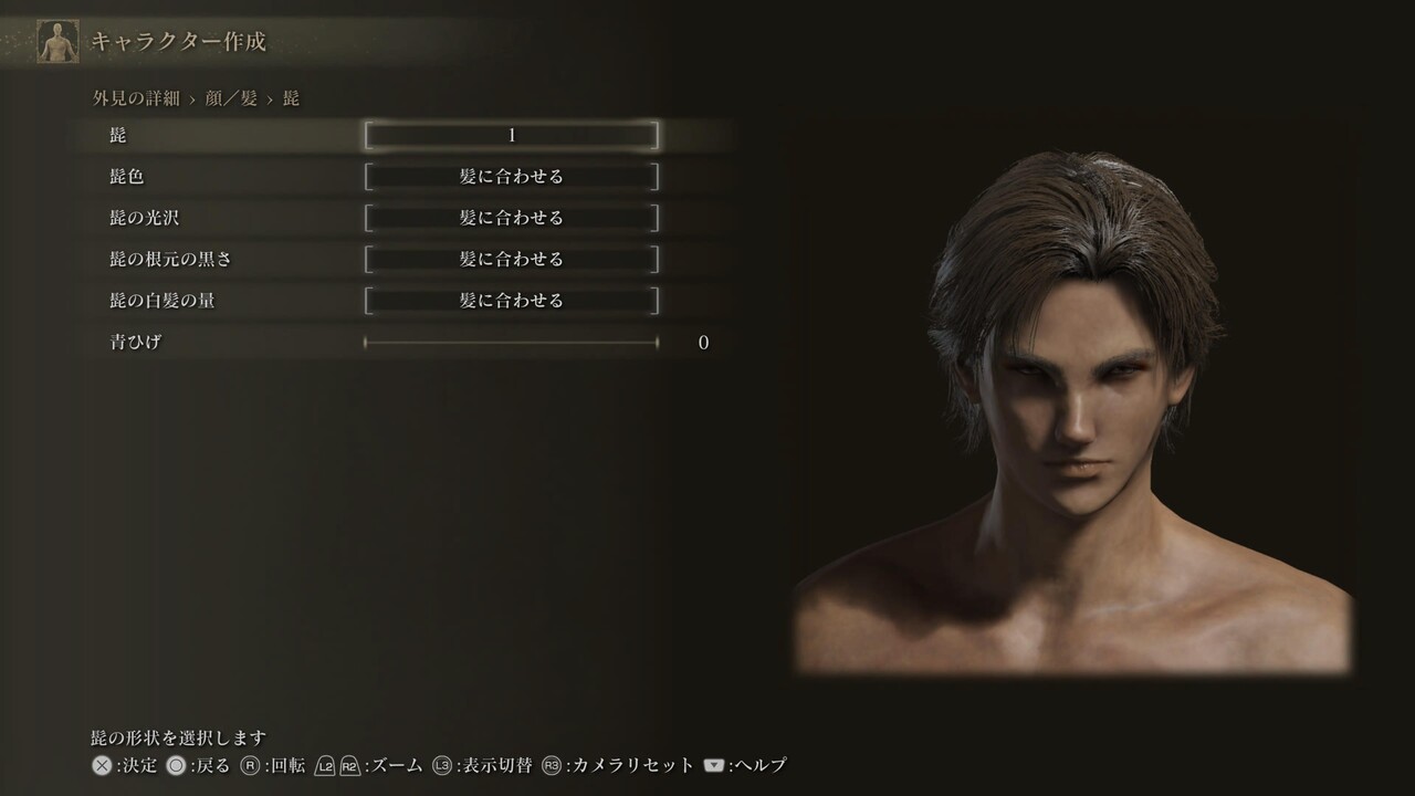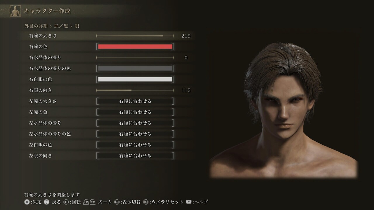※白眼の色、まつげ色、くまの色は初期値(255,255,255、0,0,0、20,30,25)。眉、髭にある、色に関する4項目は基本的に「髪に合わせる」設定になっている。