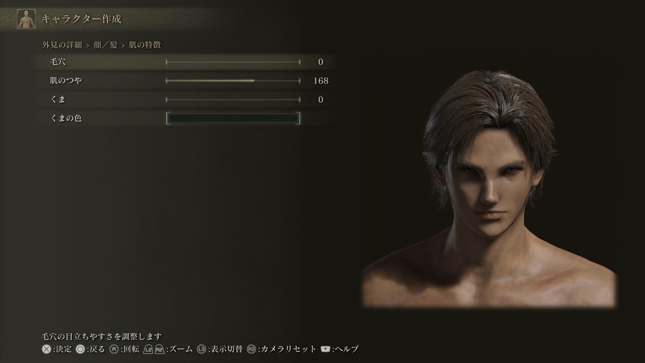 声、体のスケールや体毛、筋肉量は設定していないため自由。肌色、髪、眉、髭、まつげ、入れ墨/痣/眼帯も自由。眼、肌の特徴、化粧は、調整しても問題ないが、顔の印象が大きく変わる可能性がある。眼の項目にあるのままの設定になっているため、好みで調整しても良い。