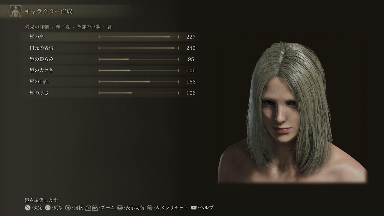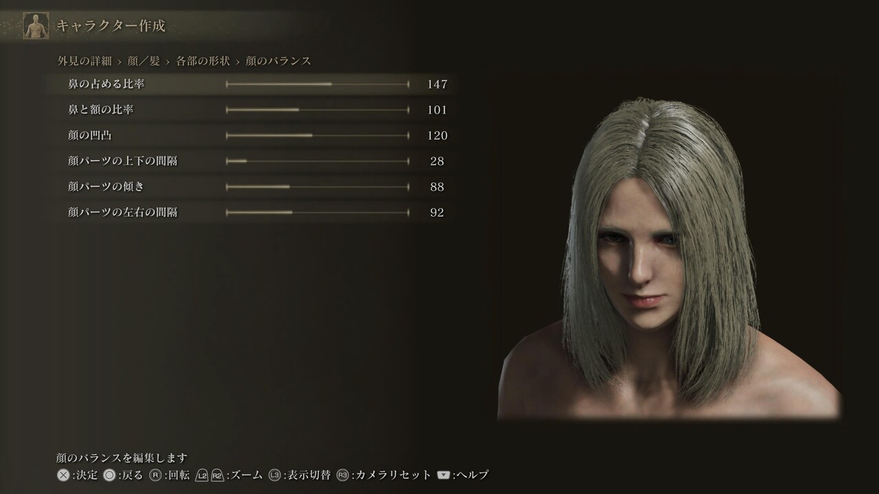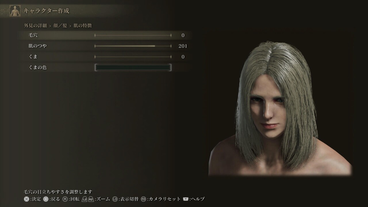 声、体のスケールや体毛、筋肉量は設定していないため自由。肌色、髪、眉、髭、まつげ、入れ墨/痣/眼帯も自由。眼、肌の特徴、化粧は、調整しても問題ないが、顔の印象が大きく変わる可能性がある。眼の項目にあるのままの設定になっているため、好みで調整しても良い。