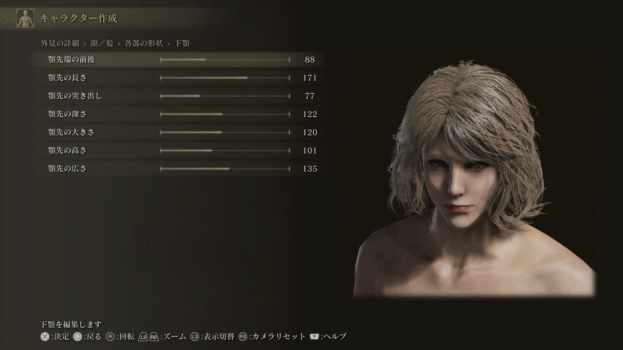 声、体のスケールや体毛、筋肉量は設定していないため自由。肌色、髪、眉、髭、まつげ、入れ墨/痣/眼帯も自由。眼、肌の特徴、化粧は、調整しても問題ないが、顔の印象が大きく変わる可能性がある。眼の項目にあるのままの設定になっているため、好みで調整しても良い。