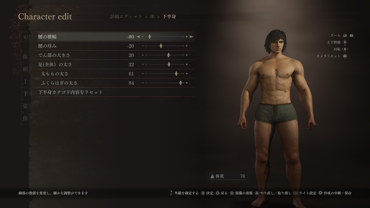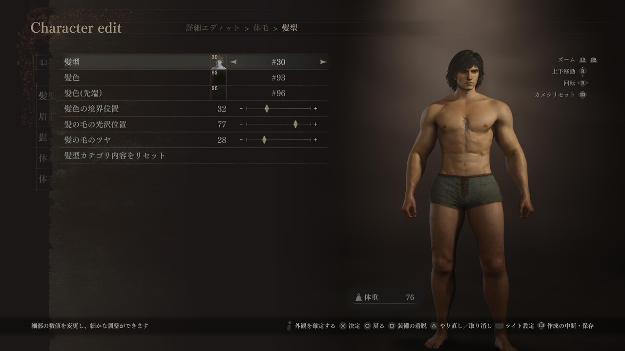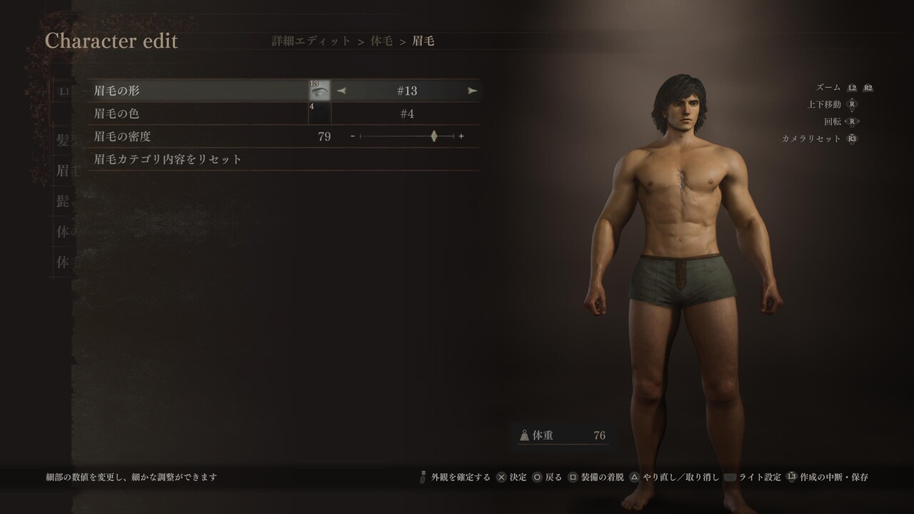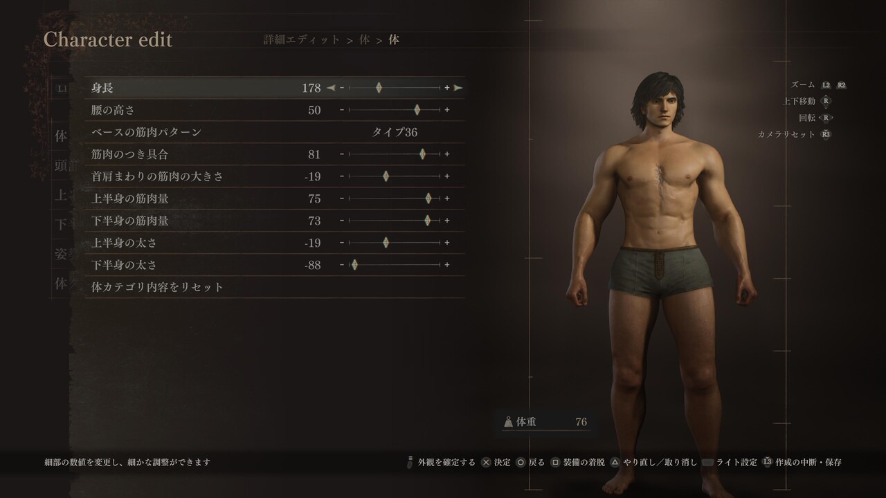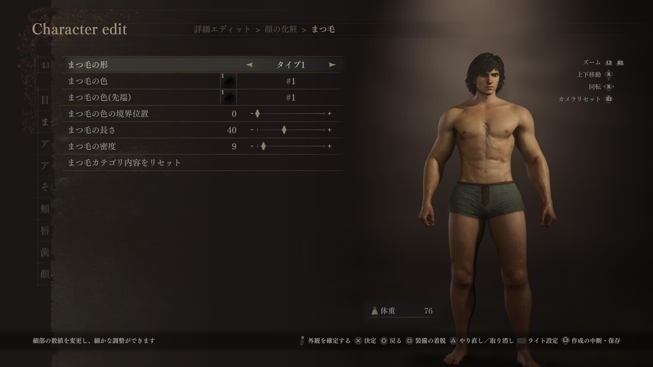 ※髭やアイシャドウ・アイライン・そばかす・頬・唇・歯の項目は、設定していない場合は掲載を省略してある。また体の毛やタトゥ/傷/汚れなども設定せず省略してあるため、好みで設定して良い。
